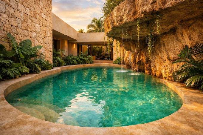 🌿 Piscinas y Revestimientos de Piscinas: El chukum es un material comúnmente utilizado en la construcción y revestimiento de piscinas. Su resistencia a la humedad y durabilidad son ventajas clave en este entorno.